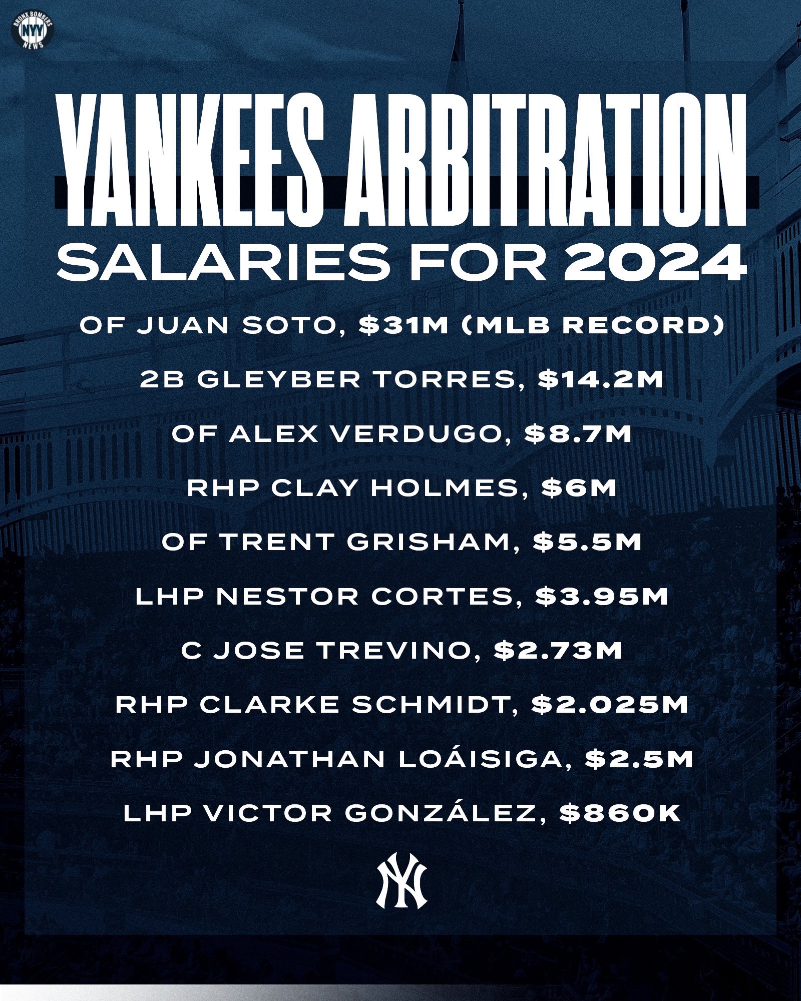 Source : www.fox61.com2024 salary projections for 33 Yankees, Mets arbitration eligible